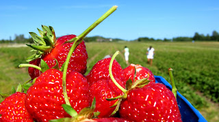 The wedding cake is now finished and the candy bowls have large holes in them. Lene and I consequently decided we should do some exercise. The weather took a turn after the wedding, and so we braved the grey skies and enjoyed a 6-7km walk along the Norwegian coast. I thought food had momentarily escaped us, but alas there was an abundance of wild berries along the track which we stopped to taste. These ranged from tiny wild strawberries to blueberries to raspberries to red currents and to a few more types I don’t know the names of. Given the summer holidays here, ice-cream shops also line the streets and wharves in the little coastal towns. Norwegian ice-cream is made from pure, locally produced cream, rather than heavily pasteurised milk. As you can imagine (and anyone that knows my love of ice-cream can surely imagine), this was another delight I was unable to refuse. To make matters worse Lene and Sven have a strawberry farm. Hence we picked gorgeously sweet strawberries directly from the field. It’s very Nordic and German to cover the strawberries in masses of sugar and eat them with milk and/or cream, and fresh sugared strawberries were often eaten after dinner.